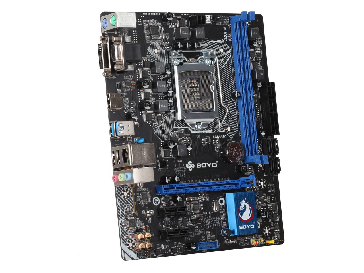 SY-H110D4 全固版 V2.0采用Intel H110芯片,支持LGA1151接口的CPU,支持DDR4 2133雙通道內(nèi)存,這款主板配備HDMI+DVI+VGA視頻接口輸出,帶數(shù)模分割線和黃金音頻電容,并且采用了霧黑PCB、中空散熱片等精選用料,適合組建高性價比平臺。