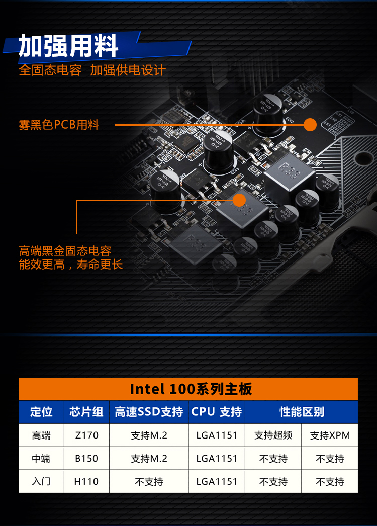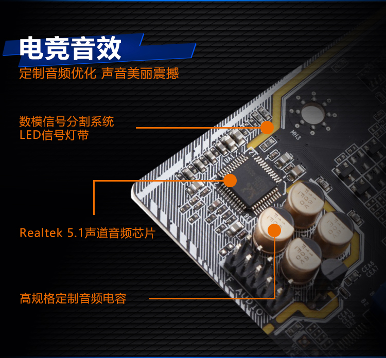 旗艦芯片,中空散熱片,雙顯卡插槽,帶M.2接口,數模分割線,音頻電容