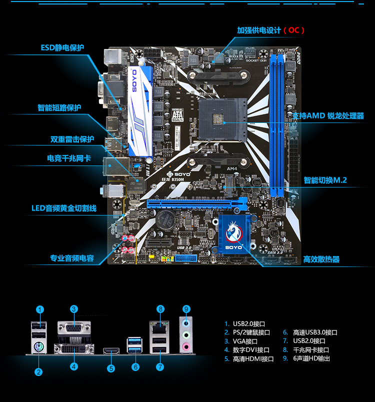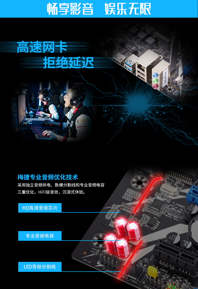 - 支持超頻,全規(guī)格M.2高速接口,顯卡插槽,2條DDR4內存槽,六相供電,整版ESD防護,中空散熱片
