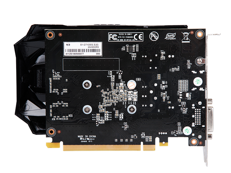 梅捷GT 1030狂龍 2G采用NVIDIA14nm工藝制造的帕斯卡GP108核心,擁有384個流處理器,搭載2GB大容量GDDR5顯存,64bit顯存位寬,核心頻率1227MHz,支持NVIDIA的GPU Boost技術,核心頻率動態(tài)智能調節(jié)至1468MHz,等效顯存頻率6GHz,整卡滿載功耗僅30W。散熱方面,顯卡搭載了9CM十一葉龍牙利刃風扇,散熱效果不俗。輸出方面整卡配備了HDMI+DVI-D,輕松應對玩家日常需求。