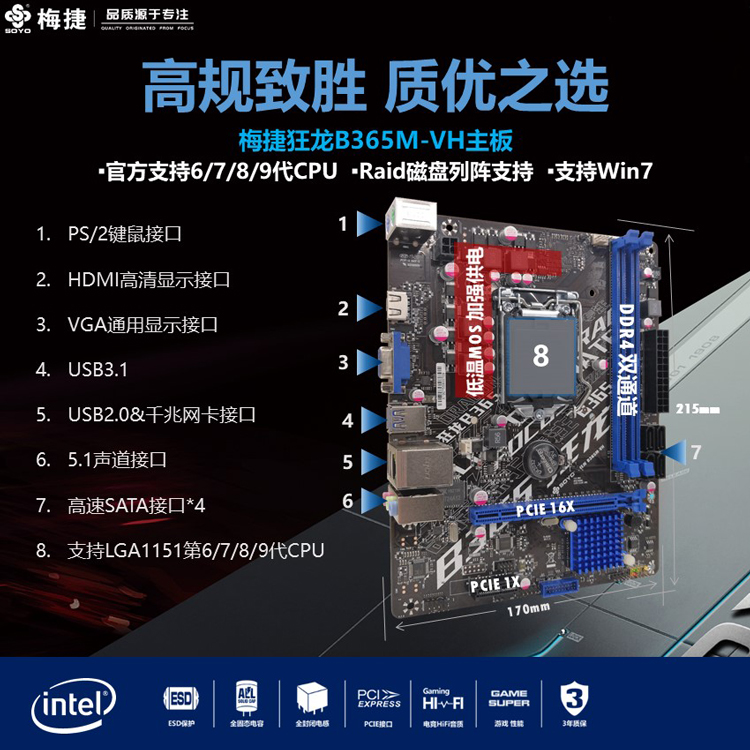 扎實(shí)供電,DDR4內(nèi)存,SATA3.0,USB3.1