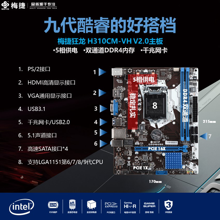 - 扎實供電,DDR4內(nèi)存,USB3.1,全板固態(tài)電容