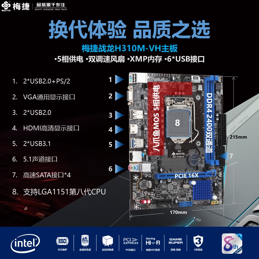 而在主板選擇方面,金牌奔騰G5400最佳搭配當(dāng)屬H310主板,既然是入門級(jí)的辦公裝機(jī)配置,其實(shí)滿足于夠用和好用之間就足夠了。這里小編強(qiáng)烈推薦超性價(jià)比高且穩(wěn)定的梅捷戰(zhàn)龍H310M-VH主板。