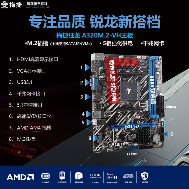 - 1顯卡插槽,2條DDR4內(nèi)存槽,5相供電