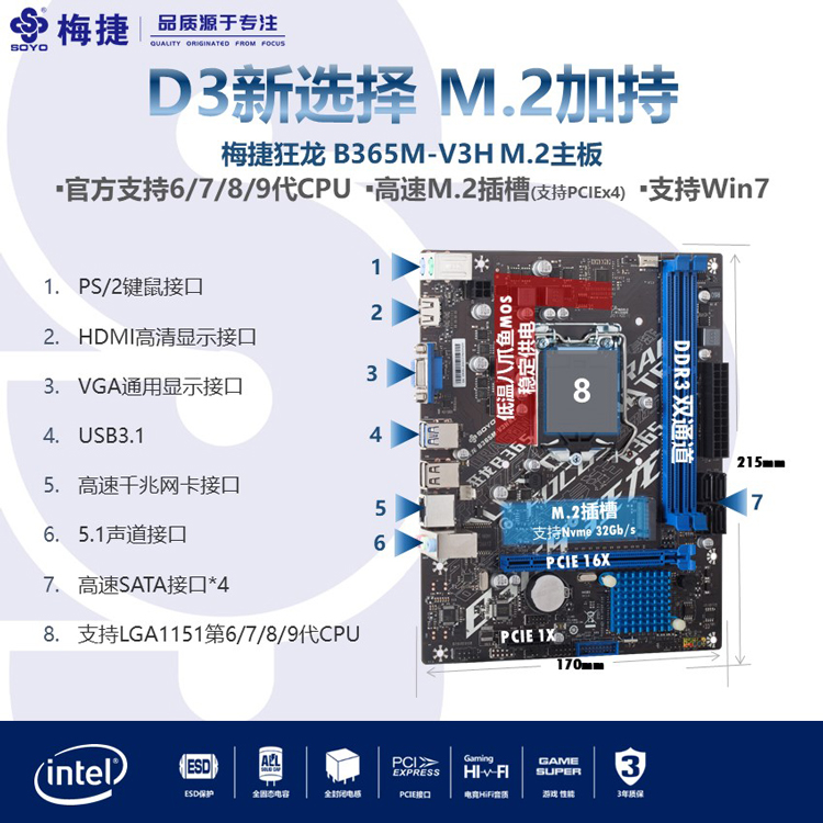 - 扎實供電,DDR3內(nèi)存,SATA3.0,USB3.1,支持RAID磁盤列陣
