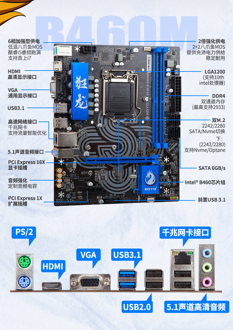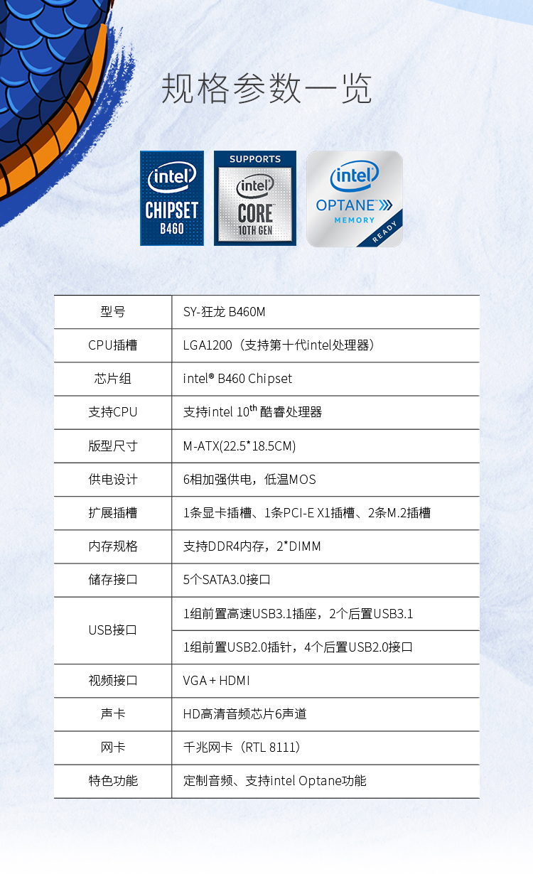 - 5×SATAIII接口; 2×M.2接口(一個(gè)為SATA/NVME標(biāo)準(zhǔn),一個(gè)為NVME/OPTANE標(biāo)準(zhǔn))