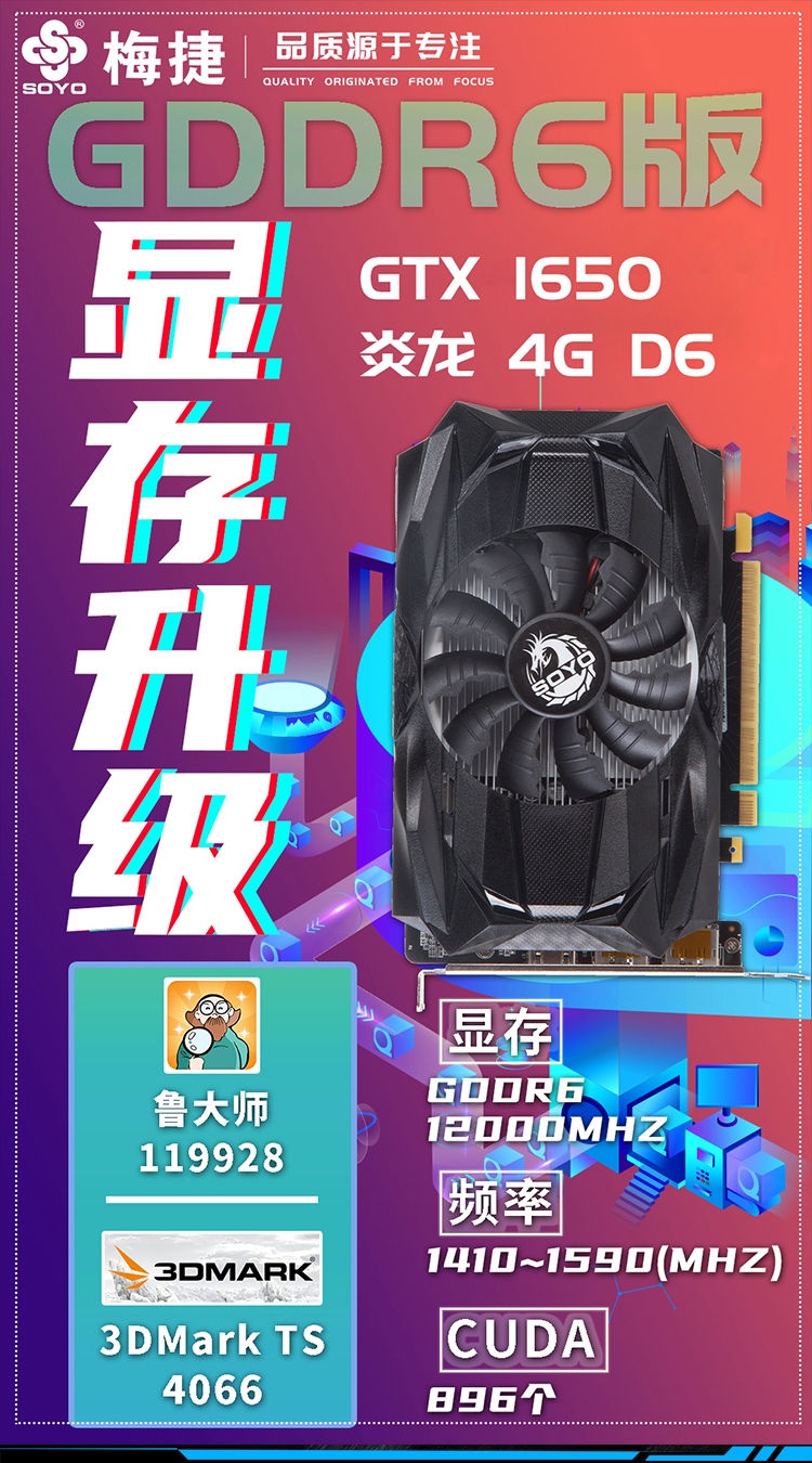 梅捷GTX 1650 炎龍 4G D6