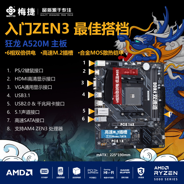 支持三代銳龍?zhí)幚砥?br /> 高速M(fèi).2接口