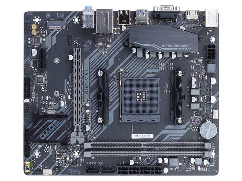 高速M(fèi).2接口,顯卡插槽,2條DDR4內(nèi)存槽,六相供電