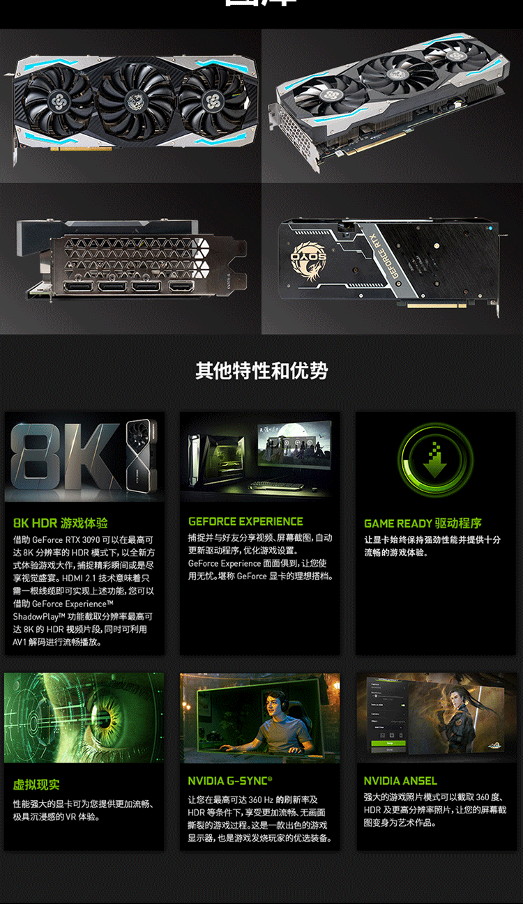 支持Simultaneous Multi-ProjectionVR圖像矯正技術,VRWorks Audio虛擬現實音頻技術,Ansel截圖功能,PhysX物理加速技術,NVIDIA CUDA,NVIDIA REFLEX,PureVideo HD高清硬件解碼,動態(tài)超級分辨率,MFAA,GeForce 3D Vision,GameWorks™,G-Sync™-Ready,GameStream™-Ready,GeForce ShadowPlay™,GPU Boost™