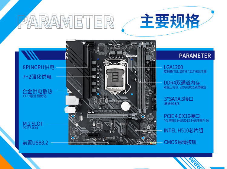 - 1條PCI-E 4.0 X16顯卡插槽(*需搭配11代i5以上處理器)