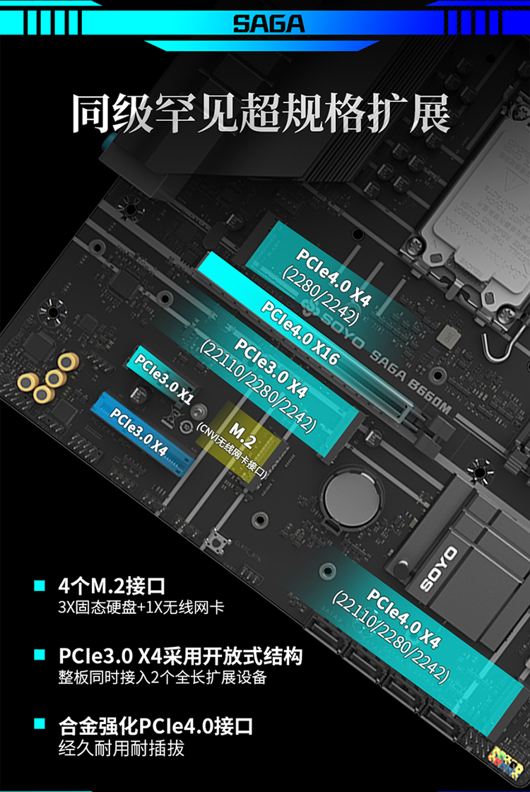 4個(gè)M.2接口(3*M.2硬盤(pán)+1*M.2 CNVi)
